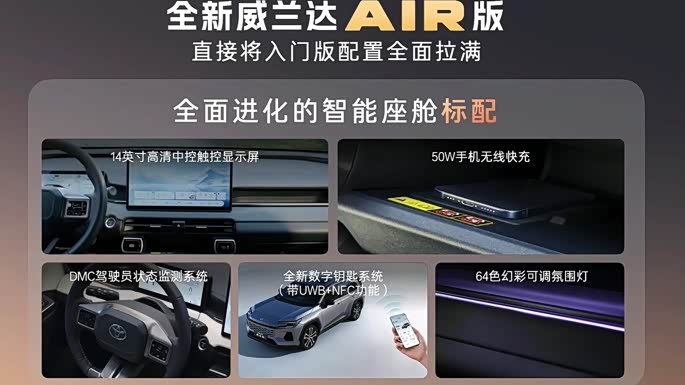 几乎同一时间,广汽丰田的全新威兰达推出了Air版,把这一定位在15万以上的车型,入门价拉到了13万级。