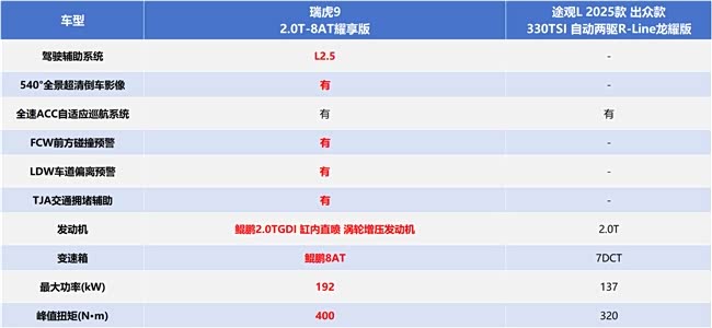 春节假期热闹非凡,接待客人、走亲访友之后,总该带全家人来一场说走就走的放松之旅。那么,对于中国家庭而言,谁才是春节全家出游的“真香”之选呢?接下来,我们就以瑞虎9 2.0T-8AT耀享版(以下简称“瑞虎9”)和途观L 2025款出众款330TSI自动两驱R-Line龙耀版(以下简称“途观L”)为例,看看谁的“幸福指数”更高。