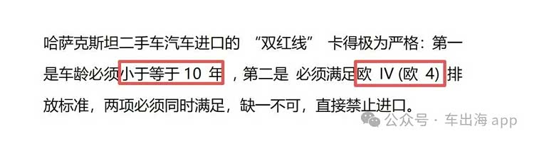 首先要明确一点,哈萨克斯坦对进口二手车的准入门槛卡得极严,核心两条硬标准,缺一不可,堪称“生死线”。第一条是车龄限制,所有进口二手车必须满足车龄≤10年,哪怕差一个月,也无法通过海关审核;第二条是环保标准,必须达到欧4排放标准,无环保认证、认证不合格,或是排放不达标的车辆,直接被挡在国门之外。除此之外,还有一个容易被忽略的细节的是,哈萨克斯坦仅允许左舵车进口,右舵车无论车况、车龄如何,均禁止准入,这也是新手最容易踩坑的地方之一。