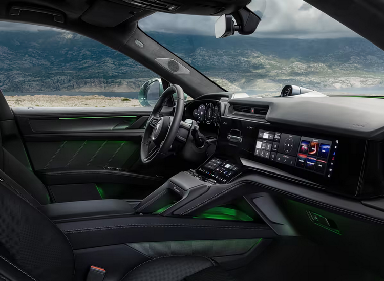 从此前发布的Cayenne纯电Turbo版本内饰来看,整体座舱布局延续现款电动家族风格。车内配备14.25英寸OLED全数字仪表盘、12.25英寸中控触控屏以及14.9英寸副驾娱乐屏,形成三屏交互结构。增强现实抬头显示系统可选装87英寸投射画幅,用于导航与辅助驾驶信息呈现。高性能版本预计在材质层面进行区分,例如增加翻毛皮包覆与运动座椅配置。方向盘造型与驾驶模式切换结构或延续Turbo车型设定,但整体功能架构不会发生明显变化。