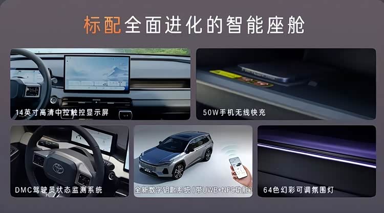 内饰部分,AIR版中控标配了一块14英寸的屏幕,支持CarPlay和HiCar手机互联;方向盘是真皮包裹,座椅是高级皮质材质;64色氛围灯和50W手机无线快充也都是标配,舒适性配置没因为是入门版就砍掉太多。