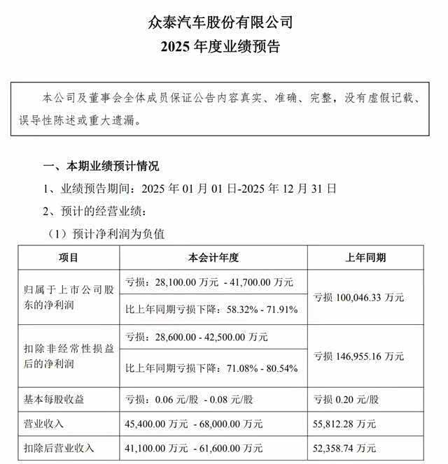 财报显示,截至2025,众泰扣除非经常性损益后的净利润预计亏损2.86亿元至4.25亿元。经营活动现金流为负,意味着主营业务不光不赚钱,还在失血。这种财务状况,别说研发新车,能维持不破产已经算奇迹。