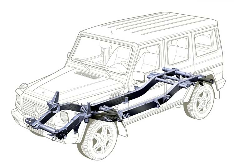 结构上,两台车其实有一个共同点,都保留了G级的灵魂--梯形车架非承载式车身,但思路完全不同。小G在紧凑化的同时做了专属开发,早期奔驰打算用电动GLC的平台,但为了保住硬派越野的血统,开发了一套全新的梯形车架。