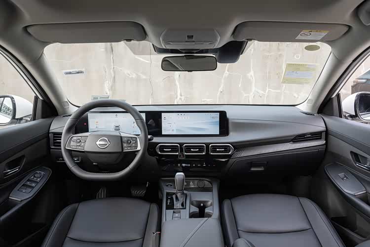 进入车内,双辐式方向盘,全液晶仪表盘与悬浮式中控屏组成的一体式双联屏、机械式换挡杆构成了车内的驾驶区域。座椅为5座设计,并采用了大量软质材料包裹,舒适度不错。配置上,根据车型不同提供了皮质座椅、倒车影像、一键启动、天窗、主驾座椅电动调节、胎压显示、自动驻车、上坡辅助、一键启动等。