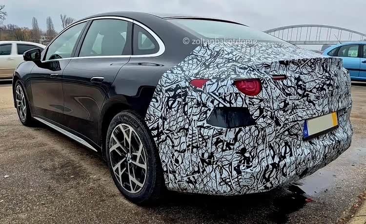 车尾采用了溜背式造型,配有一个立体的小鸭尾扰流板,整体风格偏向运动。尾灯设计与不久前发布的全新CLA车型较为接近,内部同样带有星徽标识的元素,预计将采用贯穿式设计。后包围的造型也比较简洁,强化了整车的运动感。