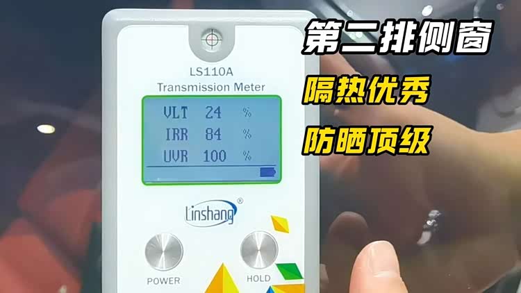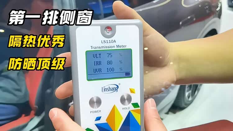 极氪007GT 2025款第一排侧窗测下来,红外阻隔率(IRR)为80%,紫外阻隔率(UVR)为100%,隔热数据相当优秀,防晒则是顶呱呱!而且透光率(VLT)高达为75%,透光冗余还剩出5个百分点,给后续贴膜留的空间不大。
