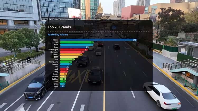 数据反映的很现实:在上海这种一线城市,燃油车正在从主流交通工具转变为一种特定选择。新能源汽车不再是“补充”,而是路面上的主体。数据100%来自视频自身计数,无需额外推测。中国品牌拿下半壁江山,但这只是上海的一线城市样本——中国如此之大,每个地方的情况都不一样,全国真实图景仍需更多城市数据才能完整呈现。