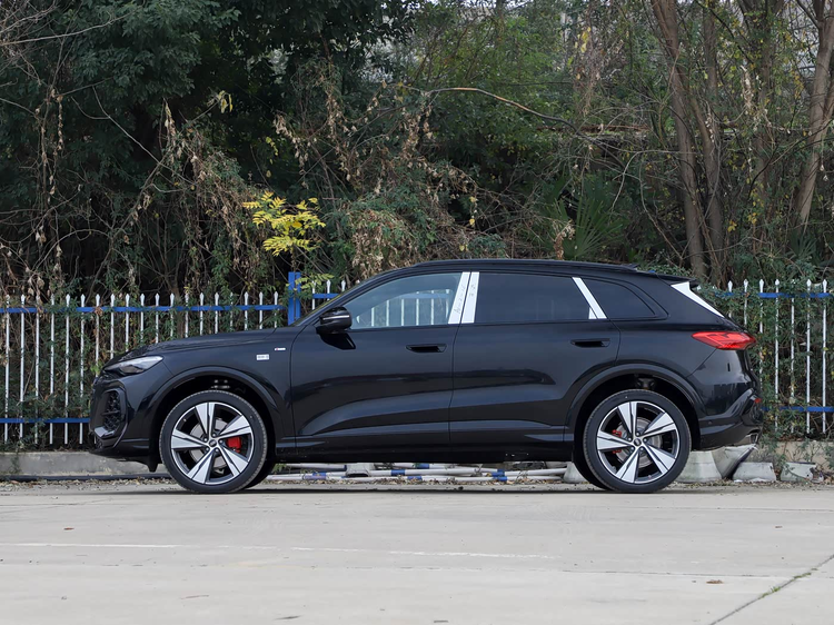 全新奥迪Q5L的车身设计同样比较干练,车顶略带一点弧度,行李架和鲨鱼鳍没有缺席,腰线采用贯穿式设计,侧裙和轮眉部分的筋线更加立体,看上去更具肌肉感。此外,该车还配备了内凹式门把手、密辐式造型轮毂、红色卡钳等,运动氛围更浓一些。