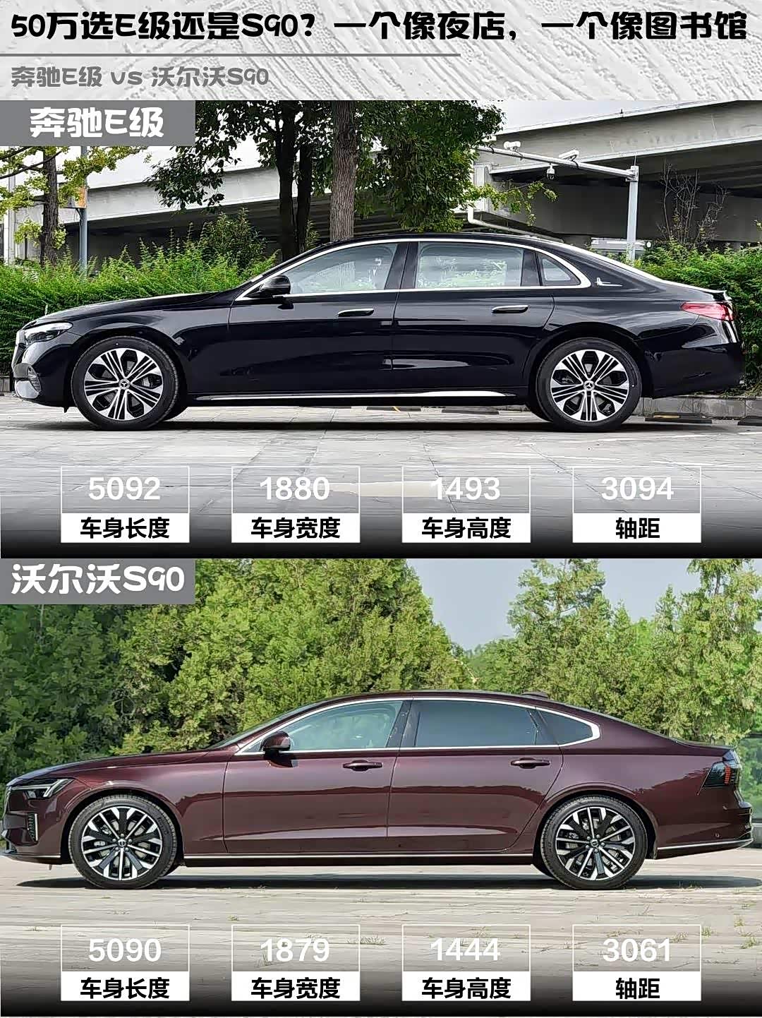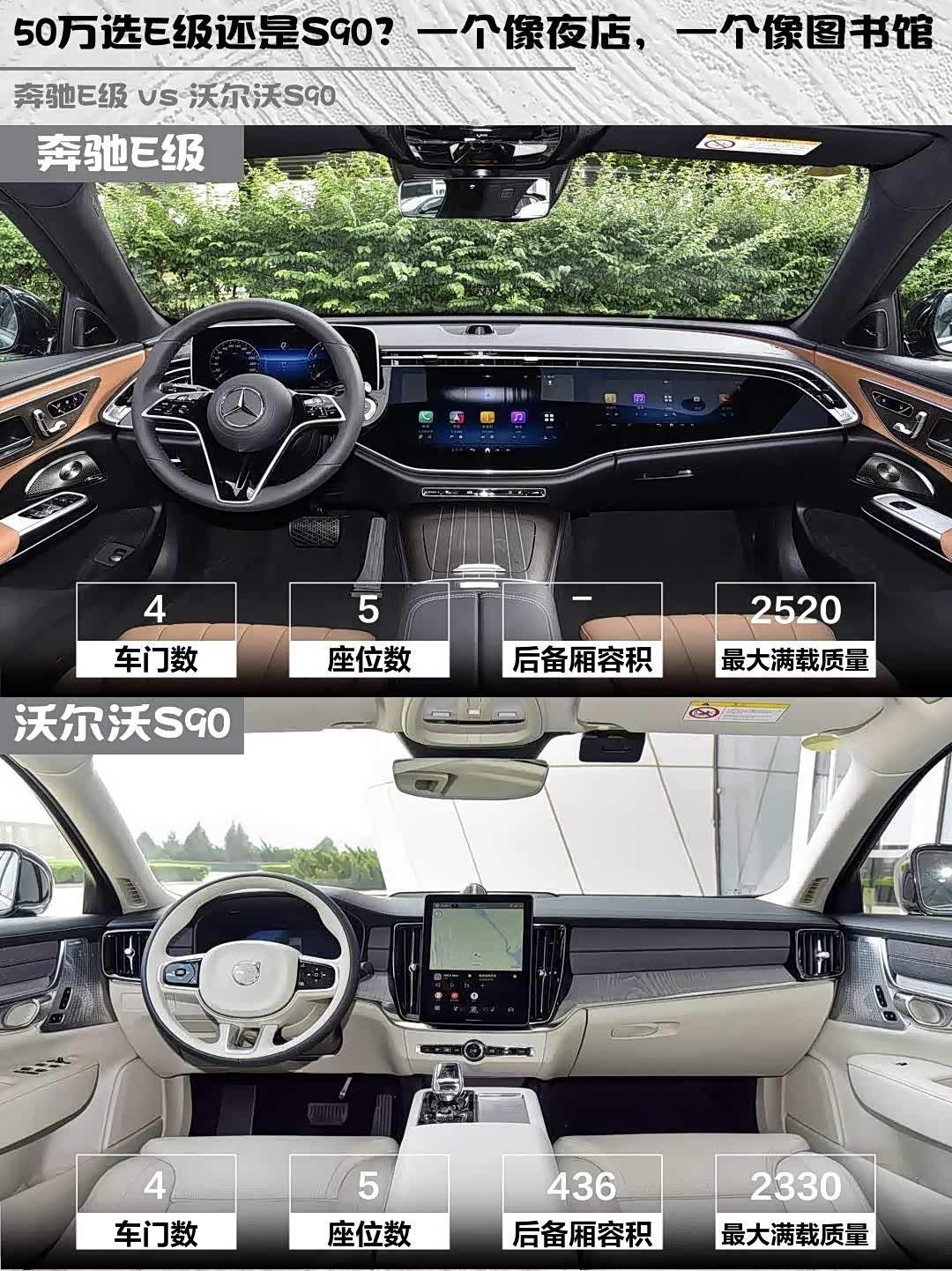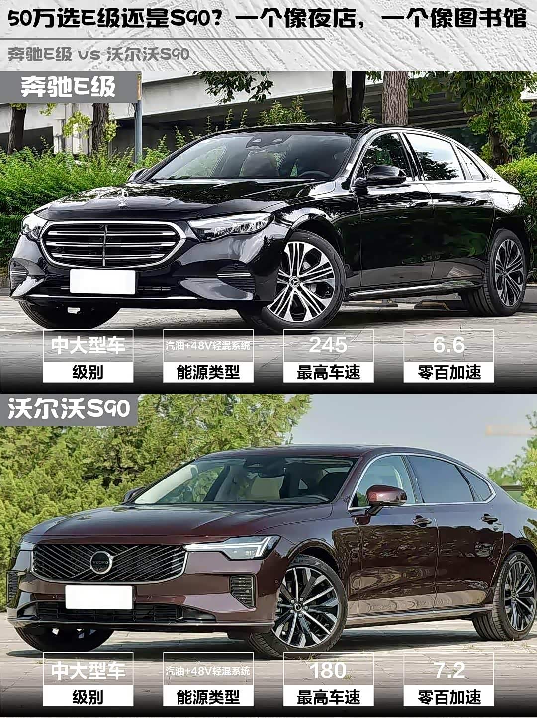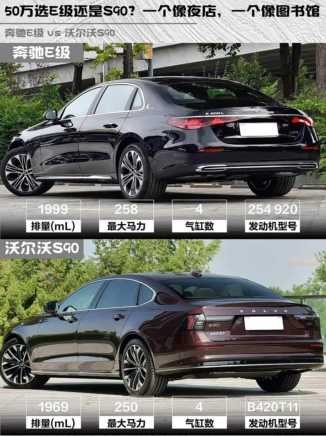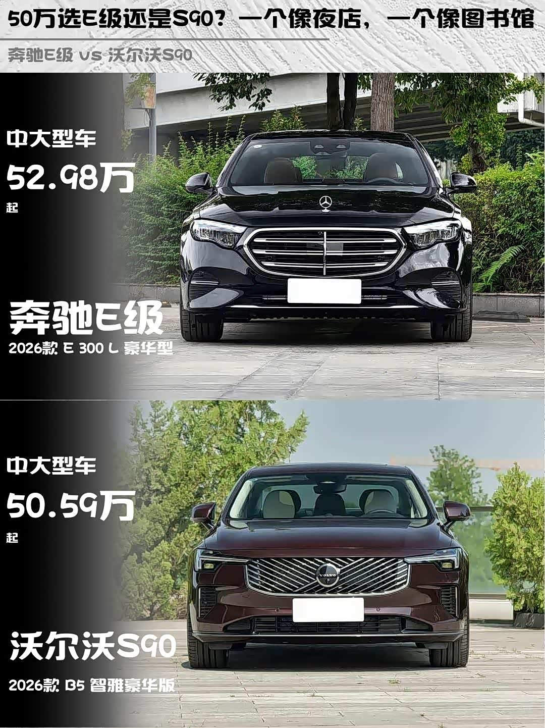 奔驰E级2026款E 300 L豪华型 vs 沃尔沃S90(参数|询价) 2026款B5智雅豪华版,50万级行政轿车怎么选?🤔