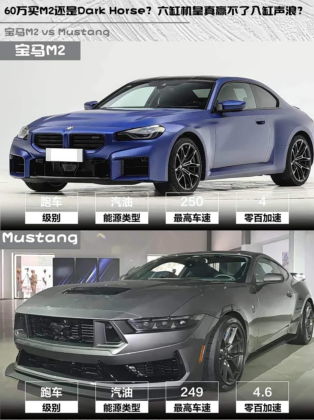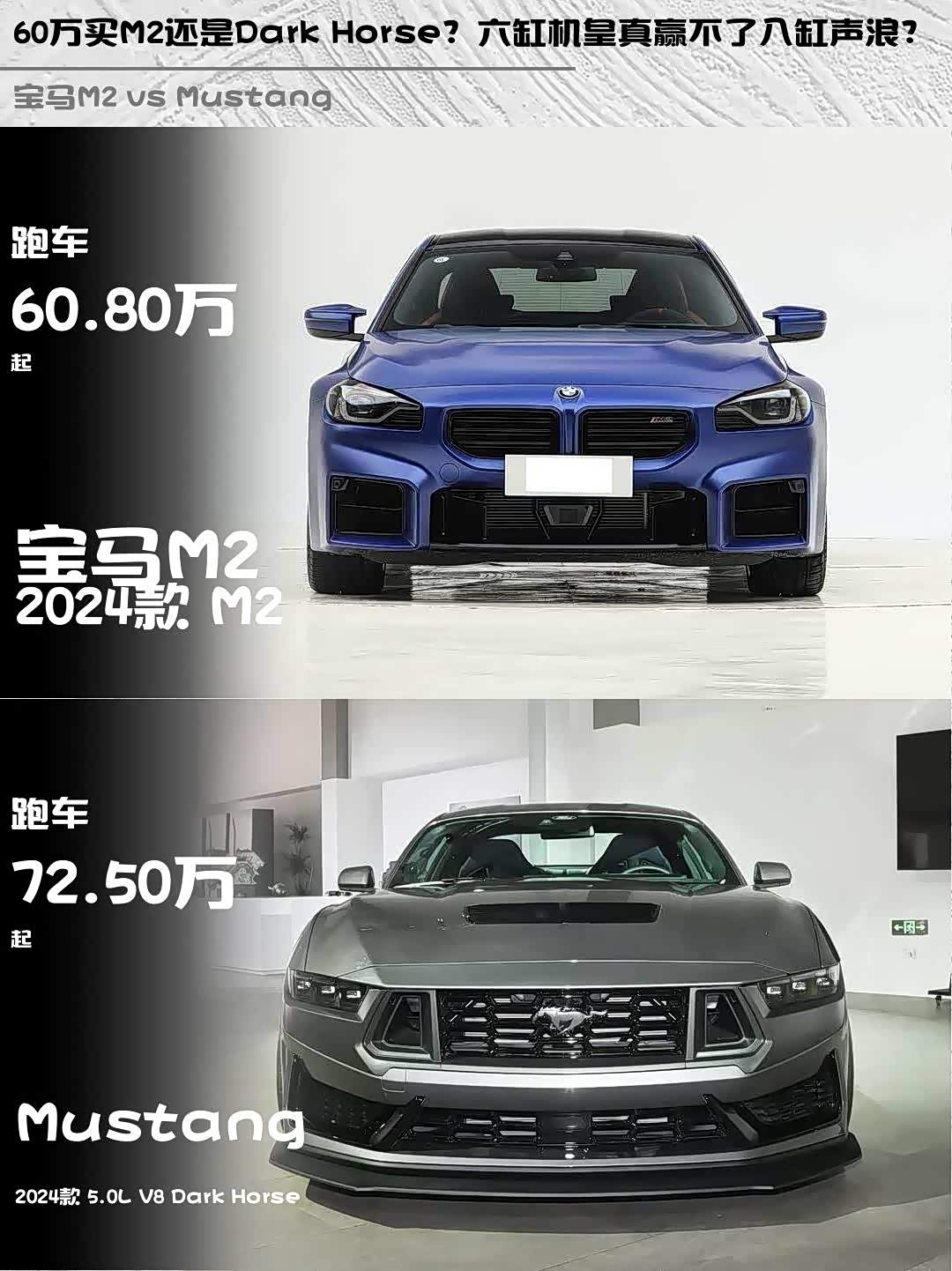最近被后台疯狂问2024款 宝马M2(参数|询价)和Mustang Dark Horse怎么选?作为开过两台车的暴躁老司机,今天直接上硬核对比!🔥