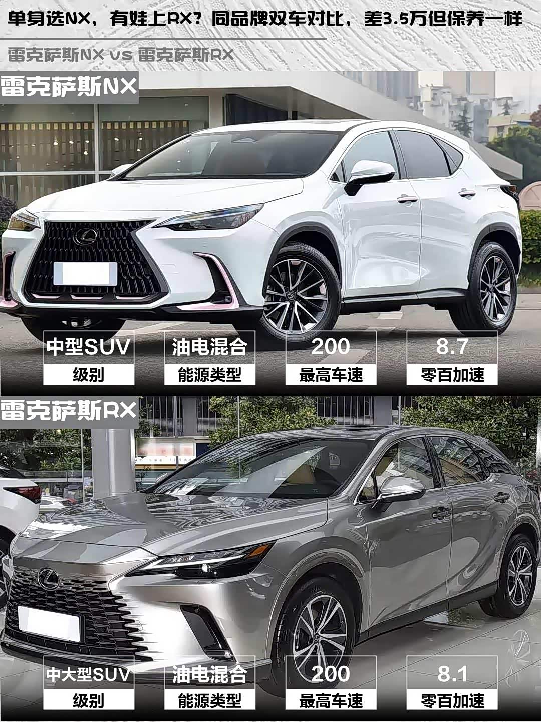 单身选NX,有娃上RX?同品牌双车对比,差3.5万但保养一样