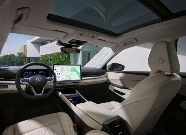 空间与美学的双向奔赴,是全新速腾L的亮眼答卷。其拥有4812mm的A+级最长车身,依托紧凑化动力总成与优化车身结构设计,实现84.5%的同级最优得房率,1849mm的纵向乘坐空间直逼B级车水准,搭配21处精细化储物空间,让家庭出行的收纳需求得到全方位满足。在拓展空间的同时,整车姿态依旧舒展动感,流线型设计勾勒出优雅轮廓。IQ.Light像素矩阵大灯由32颗LED灯独立控光,实现精准照明;Surface LED尾灯与行业首创可翻转发光尾标相得益彰,夜晚点亮时辨识度十足;座舱内30色氛围灯与软质透光门板饰条交织,营造出通透细腻的家居质感。颜色选择上,新车提供极地白、锰石黑、晨雾绿等6种车身颜色,内饰新增浅色选项,为追求生活质感的消费者提供了更具温度的驾乘环境。