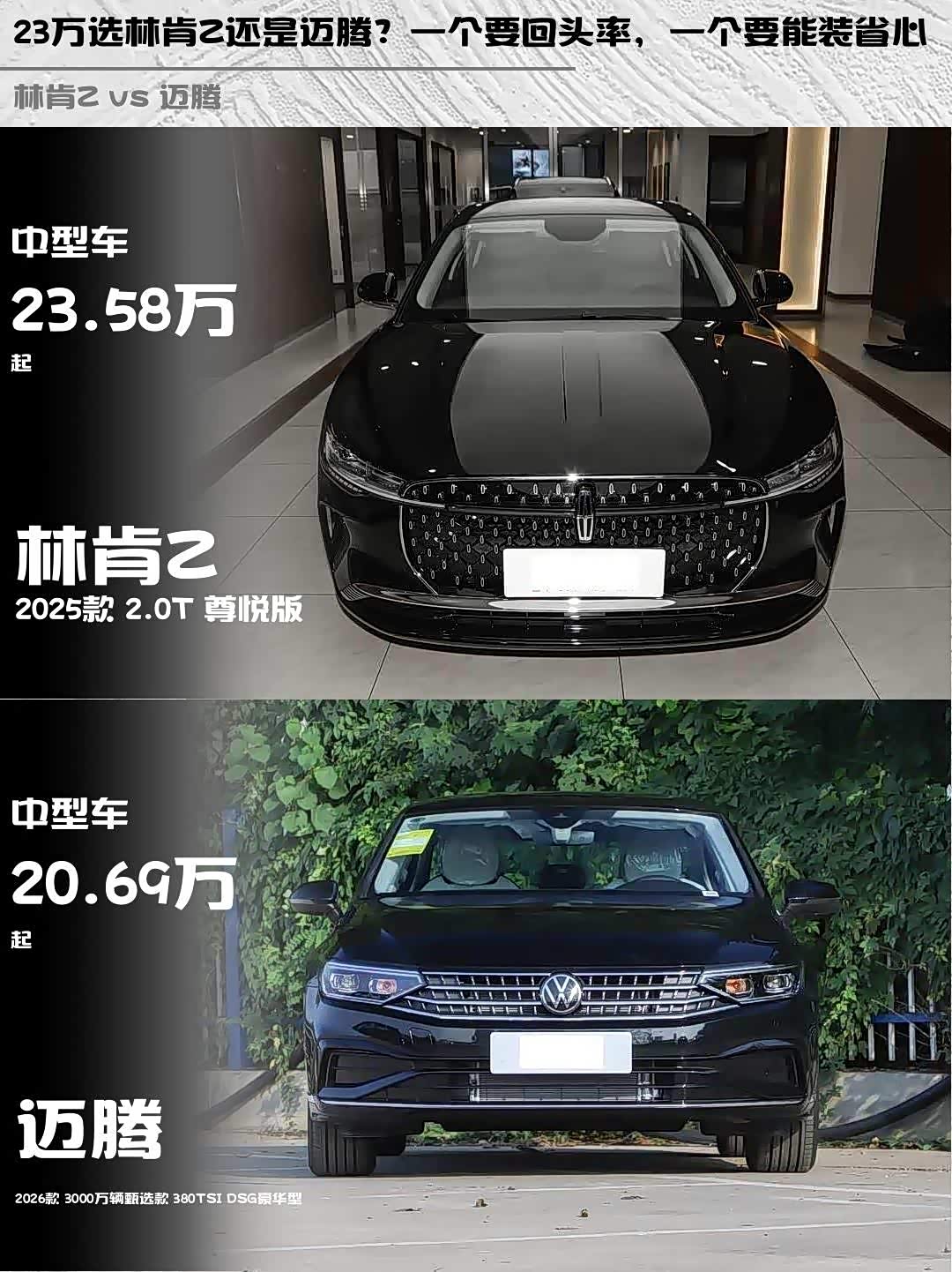最近在选车的小伙伴看过来!今天给大家深度对比两款热门中型车—— 林肯Z(参数|询价) 2025款 2.0T 尊悦版和迈腾 2026款 3000万辆甄选款 380TSI DSG豪华型,帮你选到最适合自己的那款!✨