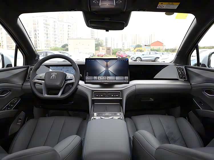 内饰走的是极简科技风:双辐方向盘、内嵌式液晶仪表、悬浮式大屏,操作逻辑清爽不花哨。重点是保留了物理旋钮!现在好多新车为了“去按键化”搞得用户盲操困难,宋Ultra这点就很贴心。前排还配了双无线充电板,手机党有福了。