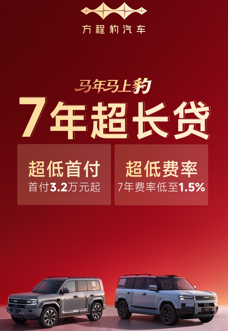车家号·0浏览·2026-02-26 10:45 · 北京近日,比亚迪海洋网宣布,全系车型推出3年超长0息、7年超长低息等金融政策,同时可叠加最高2.1万元置换补贴,活动持续至3月31日。与此同时,比亚迪旗下方程豹汽车也发布了7年超长贷的政策,适用 豹5(参数|询价)长续航版、钛7全系车型。