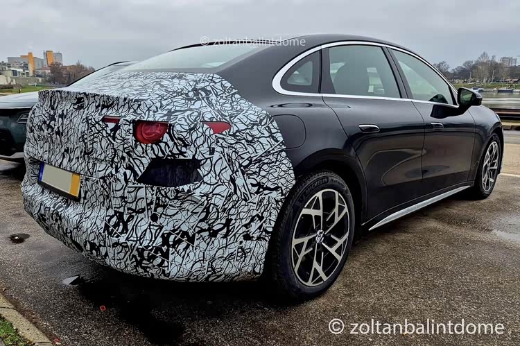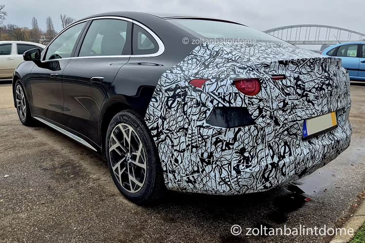 车尾部分,贯穿式的尾灯也已经隐约可见,特殊的家族风格光源造型相当的清晰,突出了科技感,翘起的小鸭尾,提升了运动的属性,三厢尾门不会缺席,后保险杠部分还是略带突出,让整车的风格形成统一。当然内饰是最大的重点,不过确实没什么悬念,目前看到的三悬浮式大屏是更加接近于全新CLA电动版的摆放方式,中间略带突出,应该是摄像头之类的自构,没有Hud,节约了成本。两侧的圆形空调出风口尺寸巨大,应该集成了气氛灯带,扶手箱前端区域采用了T字形的一体式造型,怀挡机构当然不会缺席。