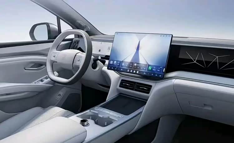 内饰整体走的是简约路线,中控台是平直的线条设计,看着清爽又舒展。车内配备了内嵌式全液晶仪表和大尺寸悬浮中控屏,信息显示清晰,操作起来也比较顺手,搭配双辐式多功能方向盘,比传统三辐方向盘更简洁,操作也更轻盈。