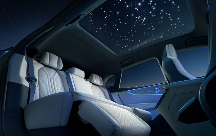 125度最大躺角加电动腿托,配合后排8英寸娱乐屏,直接秒变移动休息室。跑长途累了往后排一躺,看着带流星轨迹的星空顶,听着4680W全景声音响,真的很享受,情绪价值拉满了好吧。