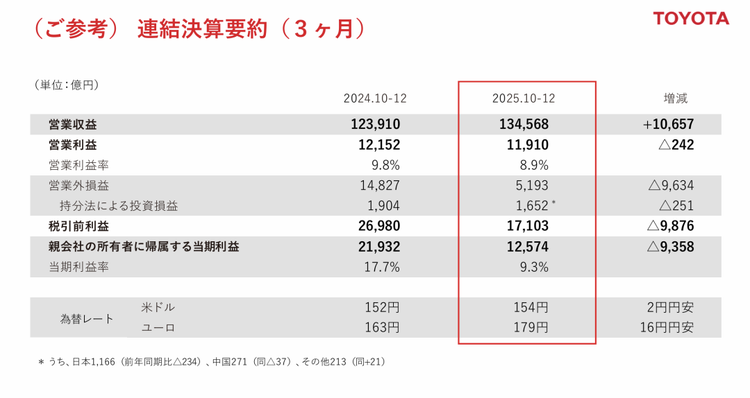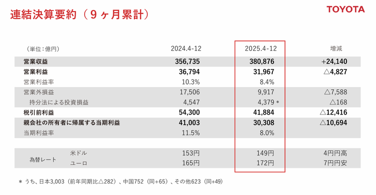 2月6日,丰田发布了2026财年前三季度财报(2025年4-12月):