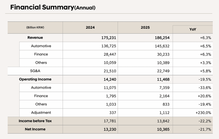 现代2025年全年财报:
