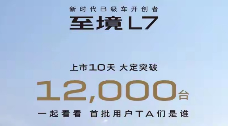 此后,这款车型上市不久的10月份,官方消息更是宣称,至境L7仅仅上市10天,大定数据就突破了12000台。