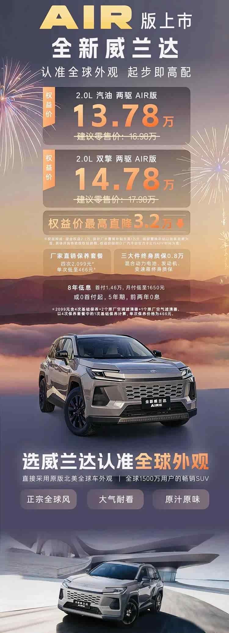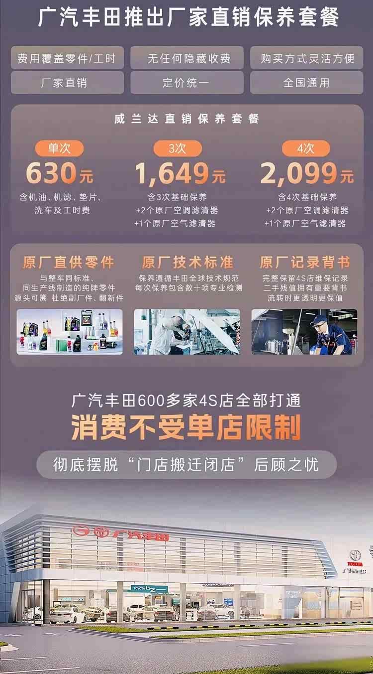 有意思的是,隔壁一汽丰田的RAV4,同款车型价格跟威兰达AIR版差不了多少,但广汽丰田这次直接甩出终身质保,电池、发动机全包,还搭了四次保养套餐,两千零九十九块,六百多家4S店都能用,这一手,把对手的底牌压得死死的。