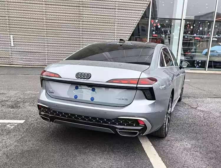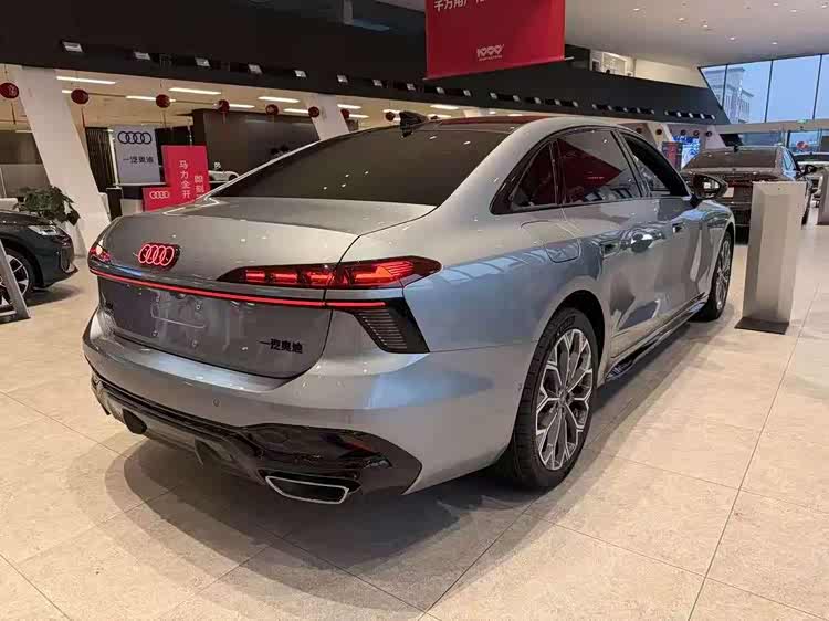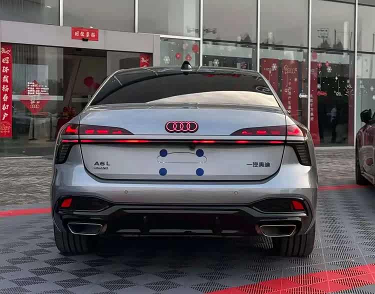 全新一代奥迪A6L的尾部简洁饱满,细长的贯穿式尾灯两侧有着上下分体效果的灯组,同样支持个性化灯光签名功能,搭配可发光的四环车标,与前灯组做到了很好的呼应,底部采用双边两出式排气布局,一种是带扩散器样式的黑色后包围,另一种则是网格状样式,并加入镀铬点缀。