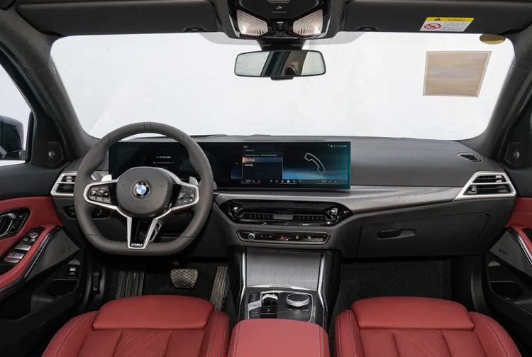 来到内饰,原厂素车的状态还是很熟悉的样子,而且宝马3系有三个选装,一个是座椅加热3500块钱,一个是ETC的1000块钱,这个选装我建议你选不选都行,没什么太大意义。但是有个8000块钱的选装,包含哈曼卡顿音响和手机无线充电,这俩组合在一起,8000块钱还是比较值的。所以说,如果你想要获得情绪价值,或者提升音质的话,这个选装是值得的。然后325i标轴里面,最低配版本也有8155车机芯片、倒车影像辅助功能、支持CarPlay的功能、金属的换挡拨片、L2级的驾驶辅助,带全速自适应巡航,天窗是一个小天窗。有一个经典的小推杆、双区温控的空调,自带PM2.5过滤的功能,氛围灯也给你了。
