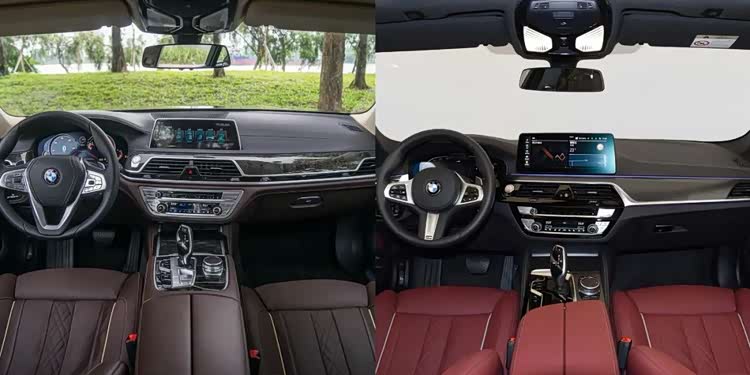 内饰造型基本一致,差在了用料和做工上。7系大面积采用软质真皮,无廉价塑料感,配色高档,豪华氛围感强;5系用料稍逊,细节处理不如7系精致。