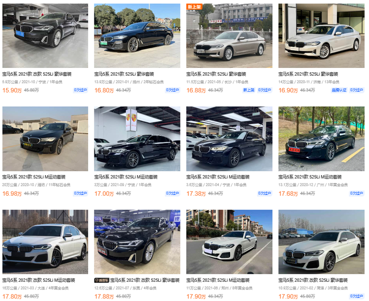 2021款宝马5系年份更新、款式更年轻,市场价同样在20万左右,车况更优,适合家用,对驾驶和品牌有一定要求的车友。