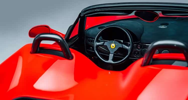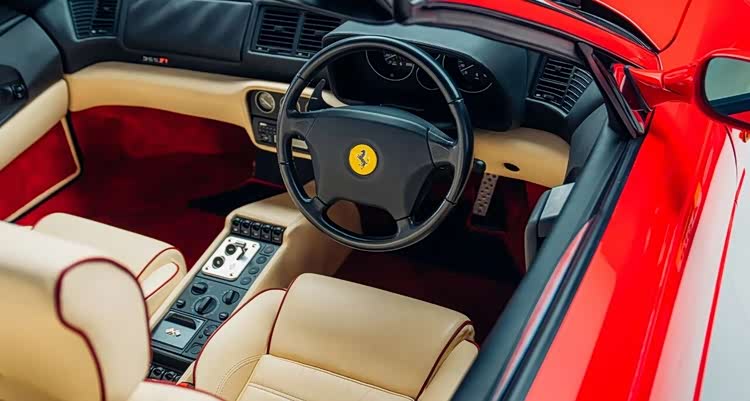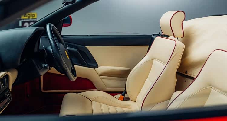 最后一台,是具有里程碑意义的法拉利355 Spider F1——全球第一款搭载拨片变速箱的量产公路车,不仅是法拉利第一,更是世界第一。它让F1技术真正走进日常驾驶,进一步巩固了法拉利的技术领袖地位。这台355 F1为英国139台配额之一,红色原版,仅行驶5500英里,车况堪称完美。