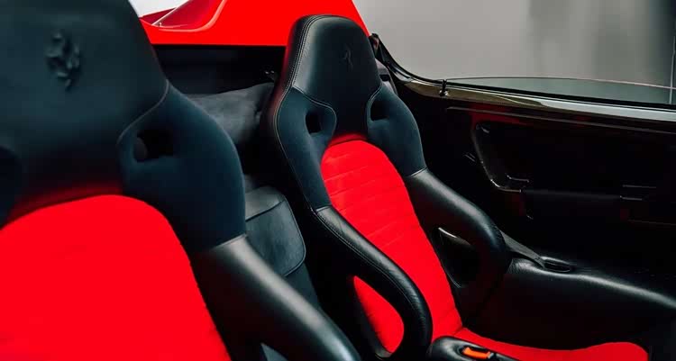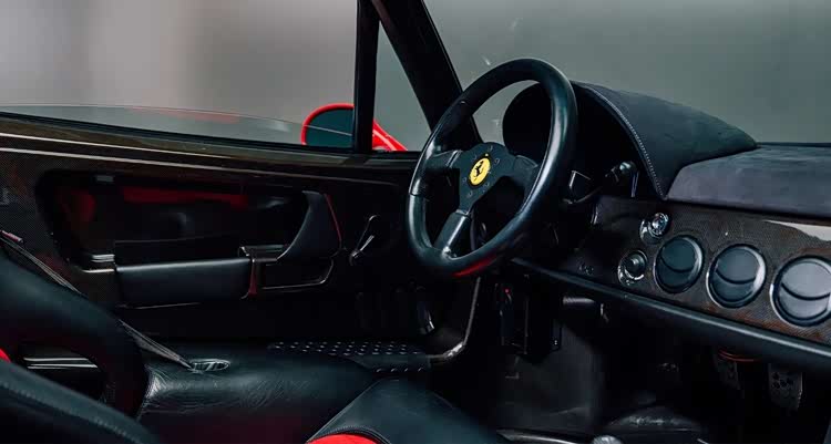 赛道技术最终必然走向公路,这也是法拉利数十年不变的传统。收藏中的公路车型首先是F40,1987年发布,1989年时仍是旗舰,与639一样是恩佐生前最后认可的车型。本次展出的这台F40是英国最成功的赛道化F40之一,当年全球仅30台改装赛车版,如今已恢复为原厂红色标准规格,行驶里程24000公里,拥有完整的赛事与收藏历史。