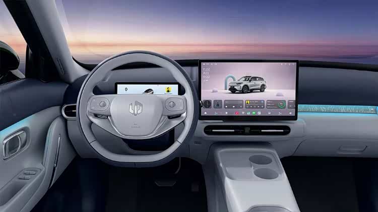 从发布内饰图片可以看出,新车中控台采用简洁平直的线条设计,配备双辐式多功能方向盘、8.88英寸全液晶仪表,以及一块14.6英寸2.5K分辨率悬浮中控大屏,整体布局贴合当下主流审美。车内还搭载了氛围灯、无线充电面板、双杯架等实用配置,进一步提升日常使用体验。
