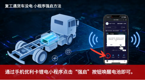当然,谁也不敢说万无一失。但优利卡有终极方案——一键强启功能。万一系统进入智能保电状态,不用搭电、不用求人,小程序就能恢复。有卡友年后反馈:“停了十几天,按一下强启,直接正常启动,啥都没耽误。”下面是它的几种强启方式,大家有需要可以收藏。