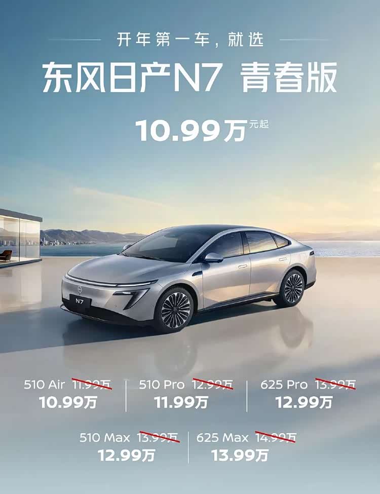 更离谱的还是日产N7青春版,其实续航和配置基本都不变,但价格变成了10.99-13.99万元,比去年上市的N7价格下降1万元,不到11万元就能买中大型纯电轿车,哪怕放在自主品牌阵营打着灯笼也不好找。