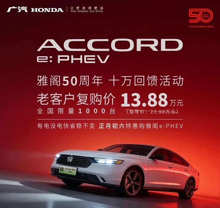 其实不仅是广汽丰田和东风日产,广汽本田也在春节期间展现出了最强诚意,雅阁PHEV只要13.88万元,曾经20万元左右的插混B级车,如今也是官方地板价。