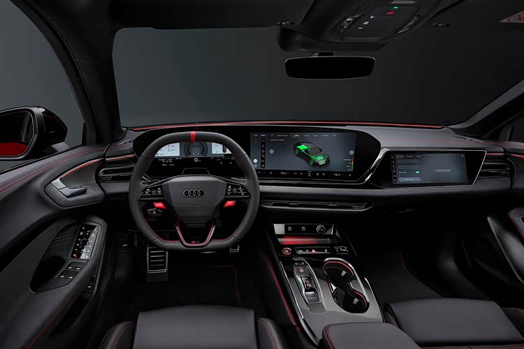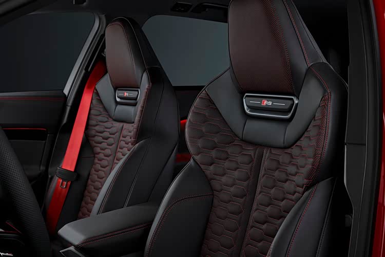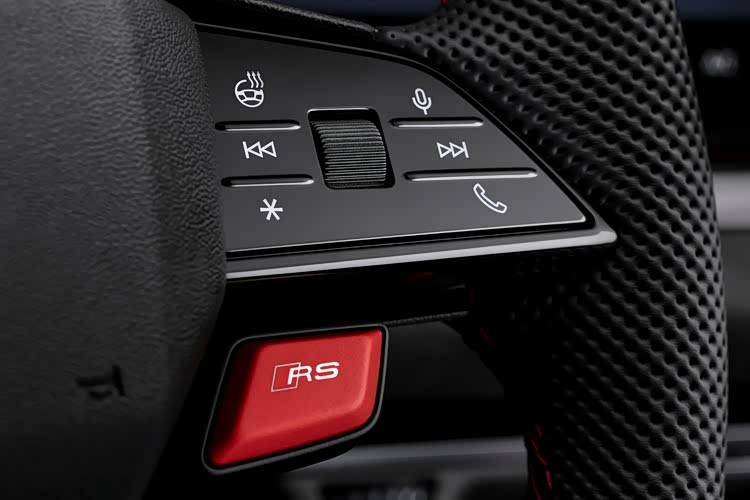 内饰方面,中控台和现时新一代的奥迪车型相同,采用三屏样式。并且可选不同的装饰配色作为车内氛围搭配。方向盘样式也有变化,不仅增加了回中标识,还有标志性的RS性能激活按键。