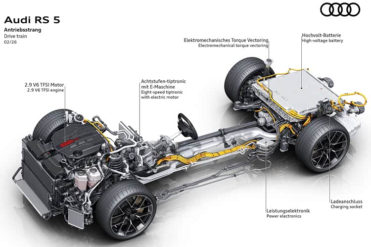 其实动力才是全新奥迪RS 5的最大亮点,基于PPC高级燃油车平台打造的这代车型,搭载2.9T V6双涡轮增压发动机组成的插混系统。