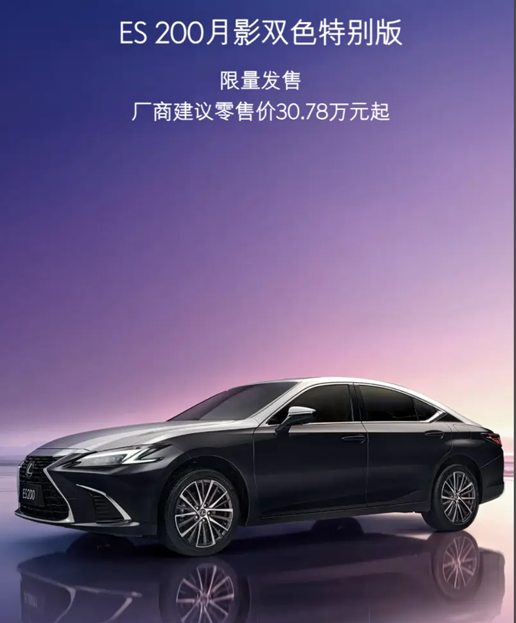 近日,雷克萨斯推出了ES 200月影双色特别版车型,售价30.78万元。当我看到这则新闻,我还纳闷了一会儿,怎么全新一代ES就这么悄无声息上市了?仔细一看才发现,好家伙,原来是现款在售ES的双色限量版本。