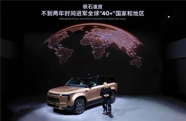 首款车型极石汽车是这一理念的首次落地。凭借强悍的全地形通过性、豪华舒适的座舱体验以及长续航增程方案,极石汽车迅速成为极石汽车打开海外市场的关键产品。上市后短时间内,极石汽车已成功进入中东、中亚、非洲等全球40多个国家和地区。在阿联酋市场,极石汽车在8万美金以上的豪华全地形细分市场中占有率突破10%,并赢得包括阿布扎比王储在内的皇室成员青睐,实现了从产品认可到圈层认同的跨越。