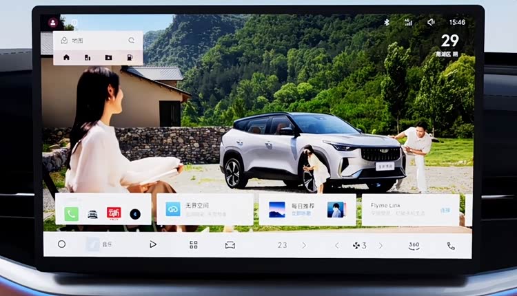 Flyme Auto 1.8系统是吉利当前量产车机的最新版本,全新博越是目前该价位少数实现全系标配这套系统的车型。14.6英寸超清全面屏拥有1920x1080分辨率,85%色彩饱和度,16:9通用化比例。这套硬件参数放在10万元级家用SUV里并非不能做到,真正让全新博越与其他竞品拉开差距的,是它没有把智能座舱当作高配版型的专属权益,也没有为控制成本而塞入一套体验打折的“入门版车机”。Flyme Auto在欢乐版和挚爱版上是同一套系统,同一块屏幕,同一种交互逻辑。