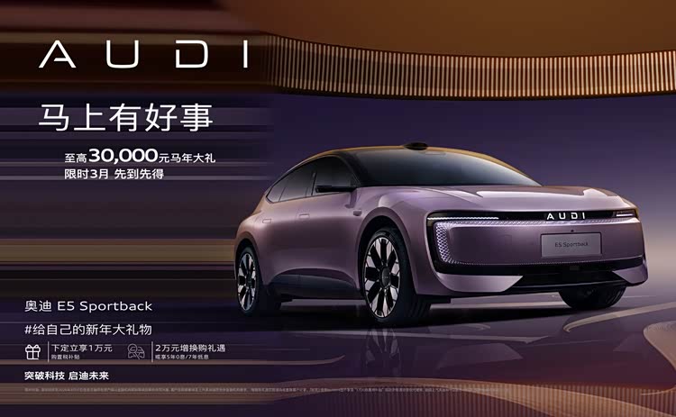 春节假期后,上汽奥迪率先在豪华纯电市场打出“价格牌”。即日起至3月31日, 奥迪E5 Sportback(参数|询价)限时推出3万元购车大礼包,权益后起售价低至20.59万元。