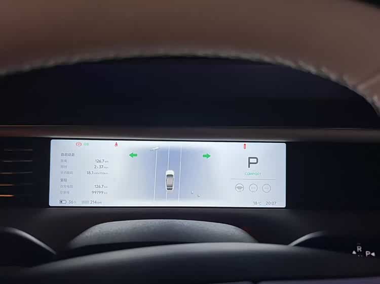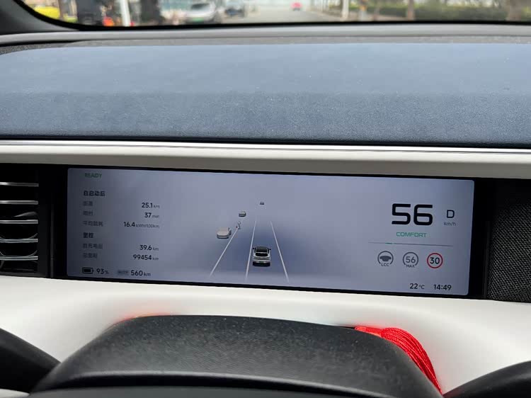 出发前,WLTP续航560公里,车辆总里程99454km。车上一共4个大人,后备箱也是满满的。而且当天温度22度,对电车来说是最友好了。