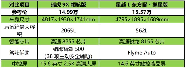 吉利星越l和瑞虎9X哪个好?空间对决:宽体魔术布局vs五座舒适取向