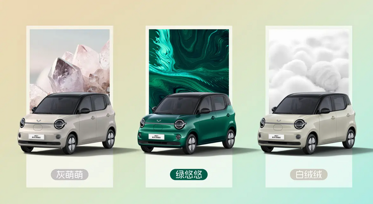 具体而言,车辆车漆更大胆,提供灰萌萌、绿悠悠、白绒绒、甜甜咖等选择,并采用黑色车顶,增加了视觉冲击。