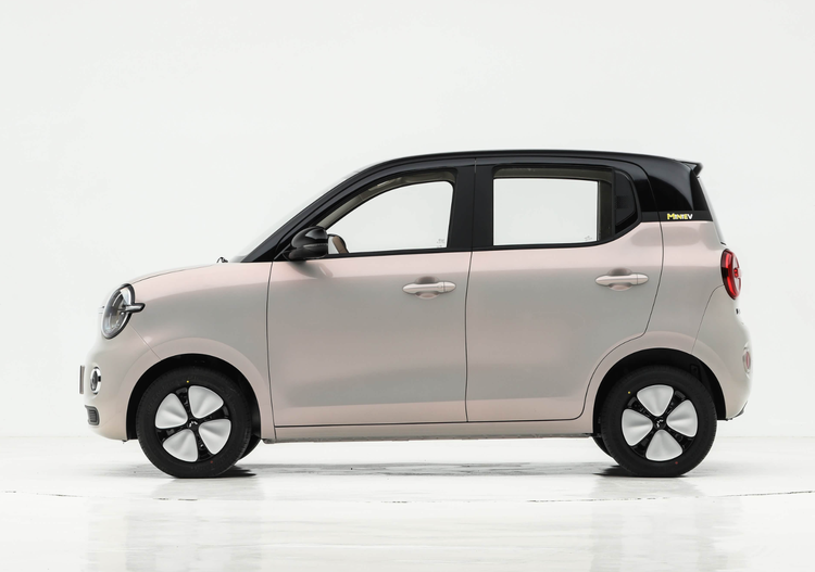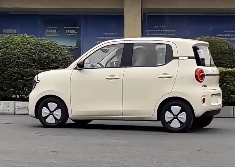 车身侧面采用较为圆润的“方盒子”造型,并新增了绿悠悠、白绒绒、灰萌萌三款新车色,再配合悬浮式车顶、C柱位置黄色“MINIEV”标识、全新四叶草轮毂等,显得更有时尚气息。而尾部圆形尾灯组通过镀铬饰条相连,后包围两侧也有圆形饰件,都与前脸相呼应。