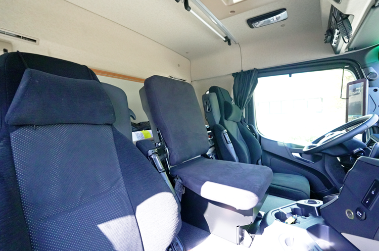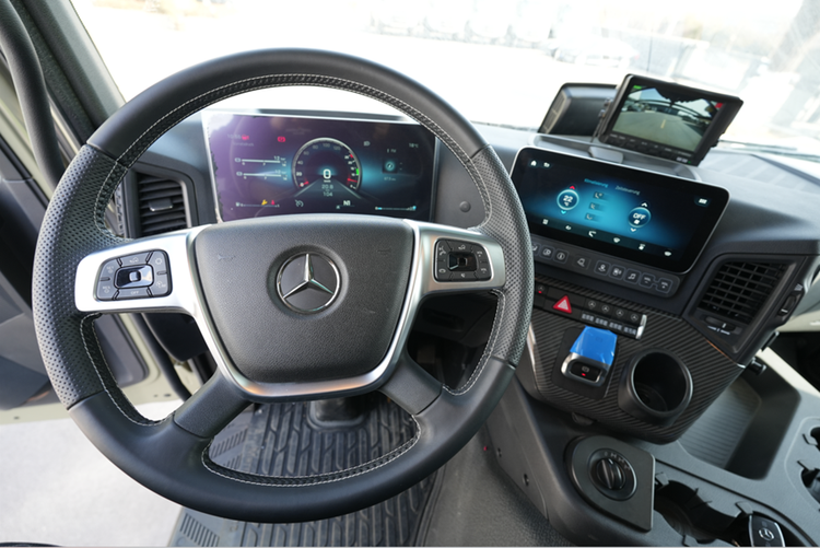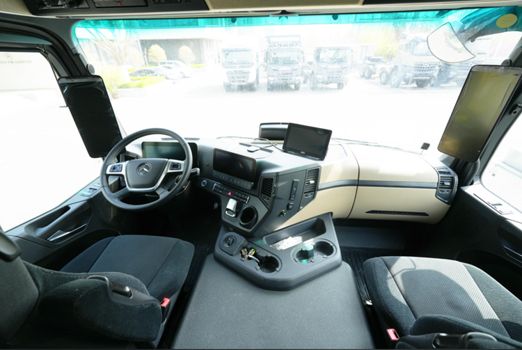 “领航者BX”采用的是单排双门驾驶室布局,整车核载 6 人(前后舱)。这种设计在重型越野房车中并不追求紧凑,而是偏向多人同行或家庭出行的使用场景。前后舱乘坐的优势在于,乘员不需要集中在单一前排区域,长时间行驶时,每个座位的空间相对独立,也更利于长途驾驶的舒适性与安全性。而且前排独立主、副两个驾驶位,座椅是奔驰重卡标志性的十多项调节功能的空气悬挂座椅,丰富的座椅功能带给你舒适的驾乘体验,缓解疲劳感与不适感。