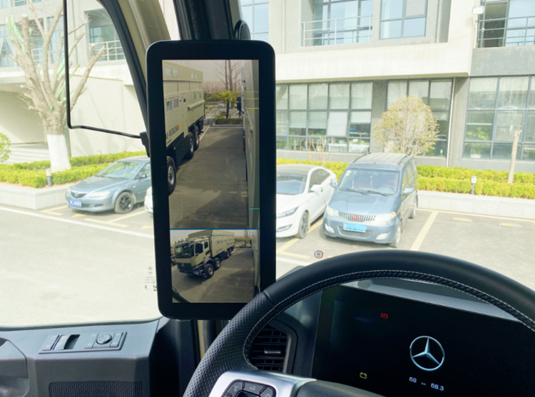 驾驶室作为行驶阶段重要的空间,其设计逻辑也直接影响整趟行程的节奏与安全性,“领航者BX”在这一部分所呈现的是一种以实用性和可控性为核心的配置思路。“领航者BX”配备了革新化的电子后视镜系统。在车身尺寸较大、箱体高度较高的前提下,传统后视镜在视野覆盖方面容易受到限制。电子后视镜通过摄像头与屏幕显示的方式,可以在一定程度上提升后方与侧后方的可视范围,也有助于在狭窄路段、倒车或编队行驶时,提升对周围环境的观察效率。