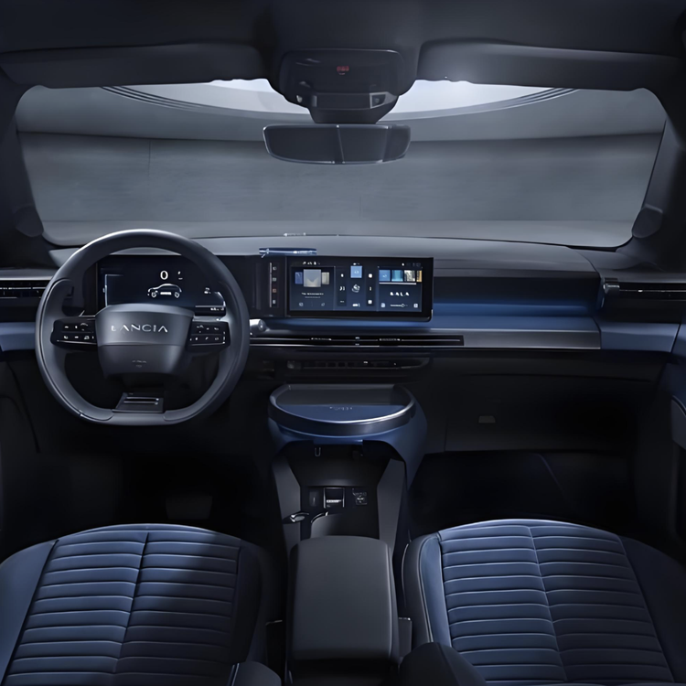 进入车内,蓝旗亚Gamma预计会与蓝旗亚Ypsilon采用相同的布局设计。采用了大面积软性材质的铺陈,并加入了大量Alcantara材质和黑色皮革材质通过红色的缝线进行无缝贴合,还有大量碳纤维饰板,低饱和度的色调也给人一种“老钱风”的感觉。中控台配备了三辐式多功能方向盘、悬浮式仪表、悬浮式中控屏以及副驾驶多媒体大屏形成了曲面的可触控大屏。采用了窄边框设计,色彩显示丰富,还支持主流的手机互联、车联网、语音控制系统。在方向盘、储物格和头枕等处增加了专属标识。