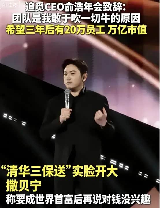 尽管言论引发争议,甚至被部分网友调侃为“画饼”,但俞浩强调这是基于未来20年的长期奋斗目标,并非短期实现。